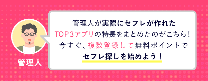 | 特徴 | ・セフレ作りの掲示板が充実 ・無料で利用できる機能充実 ・身バレ防止機能がある |