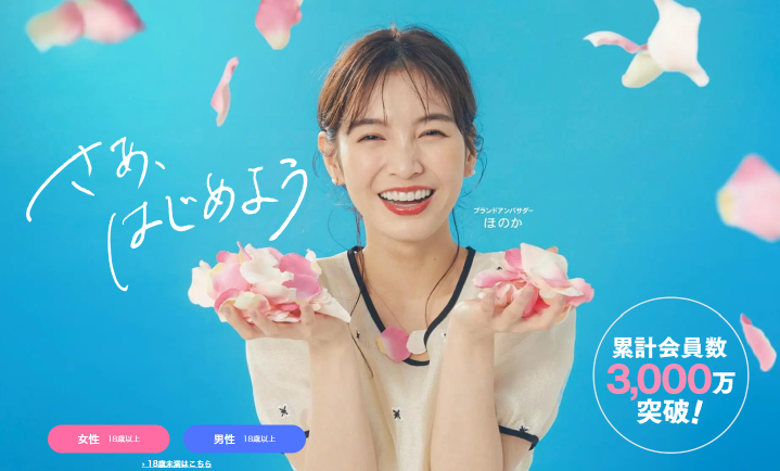 会員数3,000万の業界最大手の出会い系アプリです。渋谷で頻繁に大型トラックの宣伝活動もしているので、認知度もトップクラスですね。