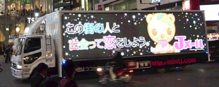 関東から九州まで巨大な宣伝トラックを走らせ、大々的に広告できるのは、Jメールが現在まで健全な運営を続けてきた証ですね。
