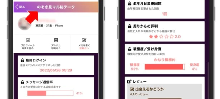 業者を見分ける強力な機能として「のぞき見マル秘データ」機能があるので安心して利用できます。